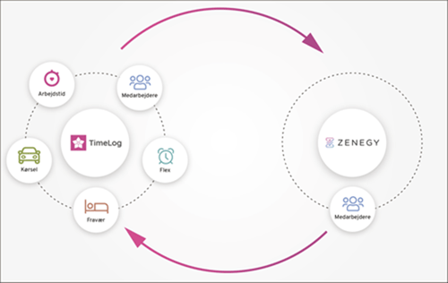 Zenegy integrationen, overfører de aktiverede fravær og løndata for de sammenkædede medarbejdere, direkte til de sammenkædede lønkoder i Zenegy.
