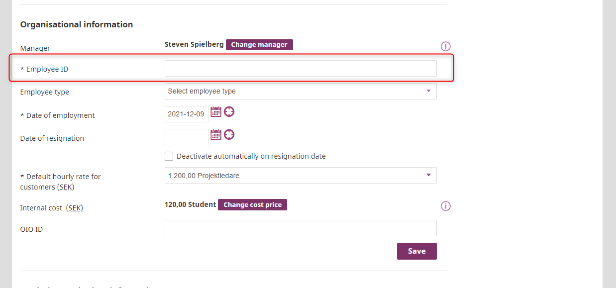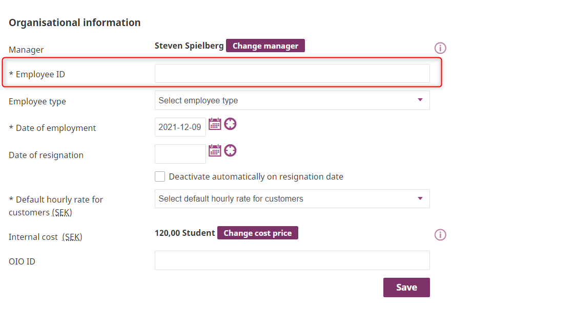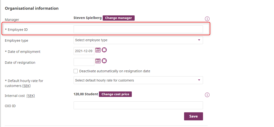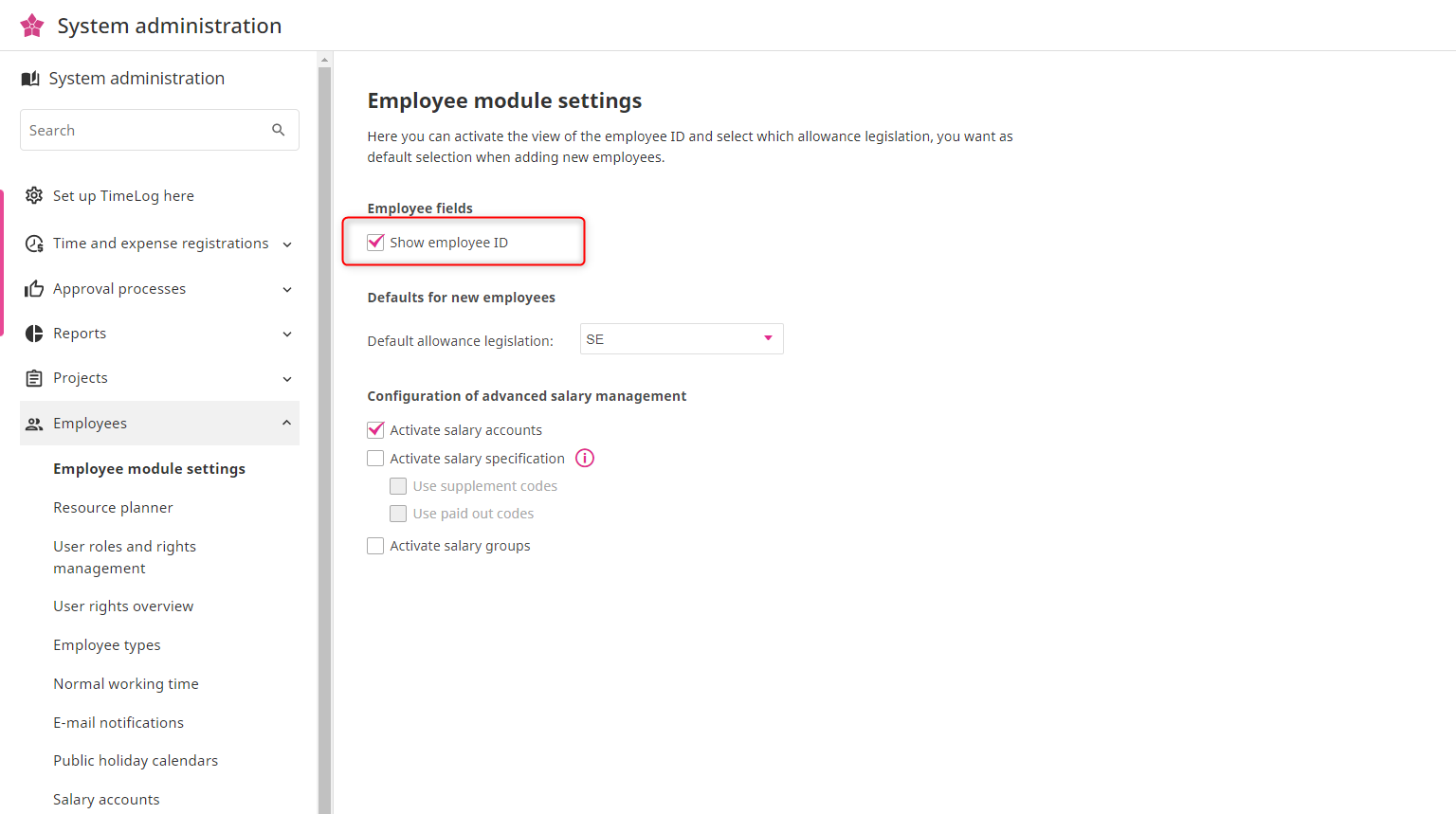 1. Make sure you have activated Employee ID in TimeLog and added the Datev Lohn und Gehalt salary ID on each employee in TimeLog.