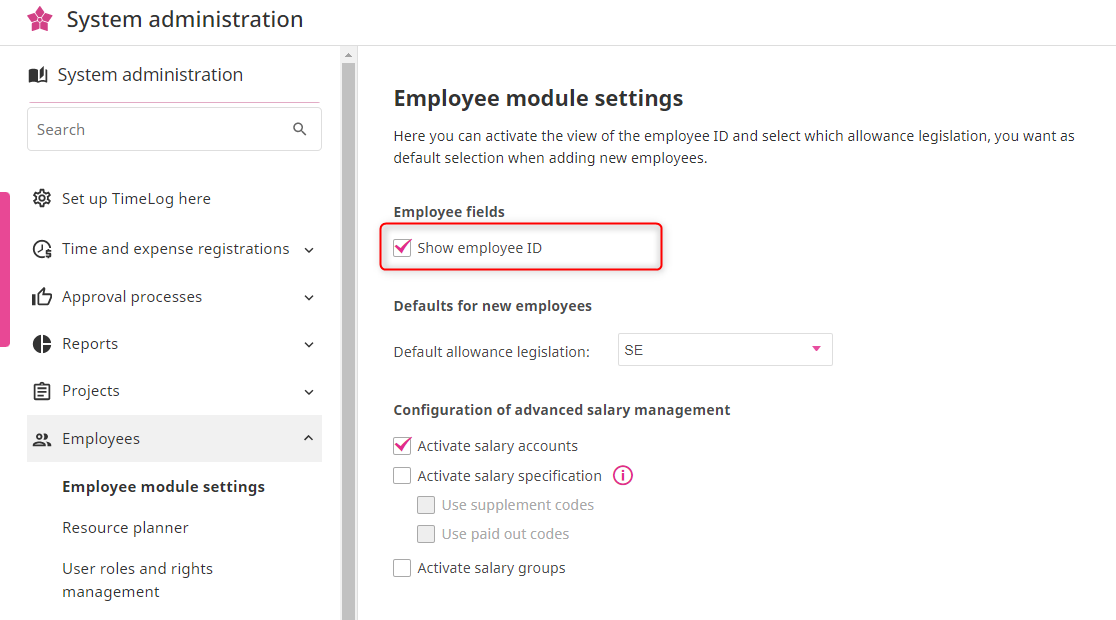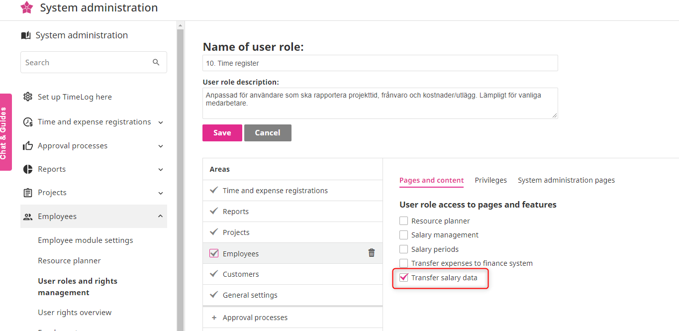 5. Remember to enable “transfer salary data” under “user roles and rights management” in the system administration. You will find it in the area “Employees”