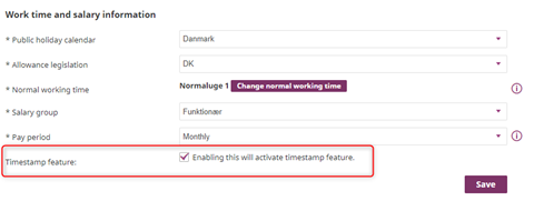 - Activate timestamps on employee card – this gives the managers the option to make timestamps mandatory for selected employees. You can do this on the employee card: