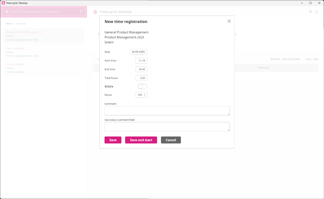 Timestamps, in our Desktop tracker, work in the same way as it does in TimeLog for web. Simply, type the start time and press play, or type in your start time and the end time right away.