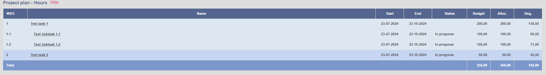 - Presents the project plan including budgeted, allocated and registered time
