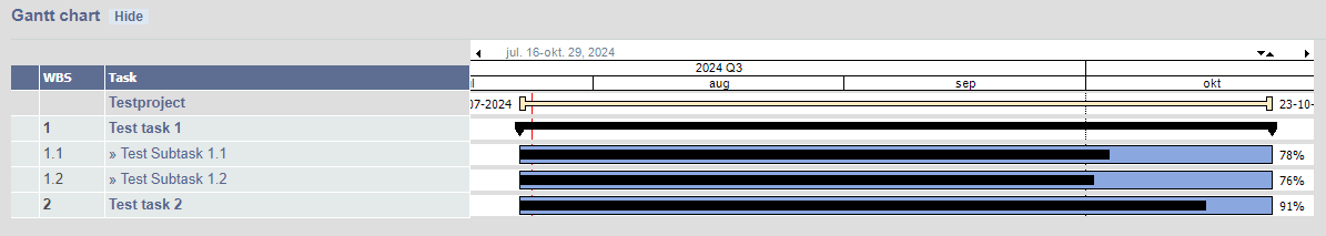 - Presents a Gantt chart for the project, provided the Show gantt chart function is ticked