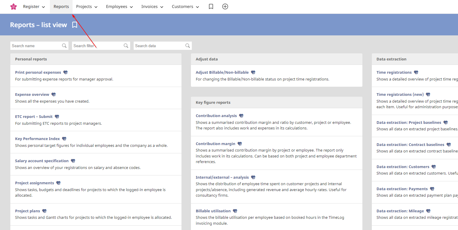 The report "Invoice line export" is used to extract your invoice lines from TimeLog and import them into your financial system.